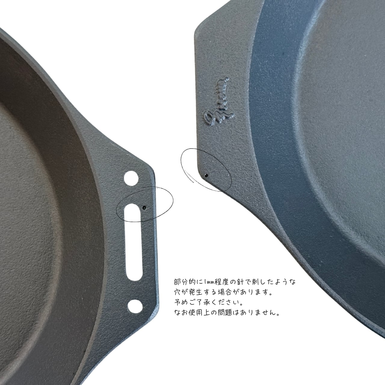 ・鋳物製品は製造工程上、バリ取り痕や打痕・小さな凹凸・数ミリの偏肉・溶かした鉄の流れ模様が発生しますのであらかじめご了承ください。